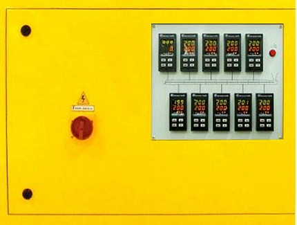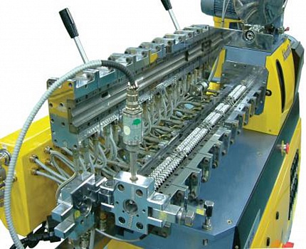 Нагрев секций цилиндра до 400 °C происходит посредством патронных электрических нагревателей, а водяное охлаждение позволяет быстро менять температуру при переходе с одного материала на другой.