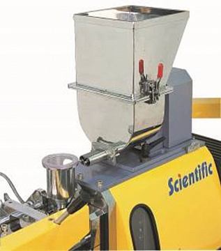Экструдеры можно дооснастить боковыми питателями для подачи наполнителей (пигментов, антипиренов и др.) внутрь цилиндра непосредственно в расплавленный полимера. Материал вставок в цилиндр и шнеков- это из износо- или кислотостойкие стали позволяющие работать с хлор- или фторсодержащими полимерами и/или работать с твердыми порошками, такими как кварц, корунд.