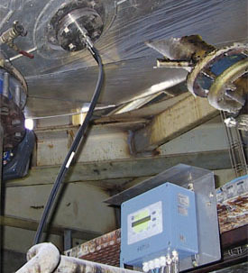 - Полевое исполнение HK2-F с интегрированными штыревыми антеннами и фланцем Ду-65. Вычислительный блок и управляющее устройство соединены кабелем.