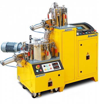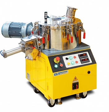 Охлаждаемые смесители объемом 12 и 24 литра предназначены для установки после 5 и 10 литровых высокоскоростных смесителей. Широкая охлаждаемая водой емкость (с двойными стенками) обеспечивает эффективное охлаждение. Емкость для смешивания, система лопастей, крышка и задвижка системы разгрузки выполнены из полированной нержавеющей стали. Для компьютерной и цифровой версий высокоскоростных смесителей охлаждающий смеситель проводит разгрузку автоматически после завершения заданного времени охлаждения. Разгрузку также можно проводить и в ручном режиме. Емкость охлаждающего смесителя можно оборудовать дополнительно устройством разбивки агломератов (чоппером), располагаемым на боковой стенке емкости охлаждающего смесителя. Это устройство можно оборудовать приводом постоянной или переменной скорости.